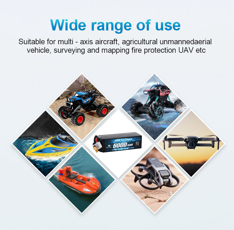 The Lightweight Lipo Batteries are versatile and suited for a wide range of applications: